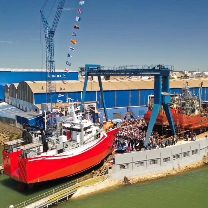 “Este es el octavo barco de esta nueva generación que botamos en poco más de 2 años. Todos los anteriores han tenido un desempeño excelente, con campañas de pesca exitosas y clientes satisfechos. Algunos dudaban que la renovación de la flota pesquera era posible y estamos demostrando que se puede concretar con buques de primera línea, diseñados y construidos por argentinos” y agregó: “Pero lamentablemente la alegría no es completa. Con lo que hemos producido, tanto los trabajadores como la propia empresa deberíamos estar muchísimo mejor de lo que estamos. El esfuerzo que hemos hecho para lograr estas botaduras y no detener inversiones como las de la nueva nave industrial es enorme. Hemos perdido dinero trabajando, nos hemos descapitalizado y nos hemos endeudado, pero lo que aún no perdemos es la esperanza”. También dejó Contessi esta reflexión: “Si el Astillero y el Armador nos hubiéramos puesto a hacer un costeo mensual, no habríamos llegado a esta botadura y su construcción se habría interrumpido tal como se han frenado otros proyectos. Este barco se bota sin contrato, sin precio. ¿Se entiende ahora la profesión de FE en el País por parte del Astillero y de la empresa armadora que implican este tipo de emprendimientos?”