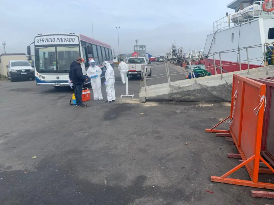 A pie de muelle los esperaban delegación somu mar del plata ,consorcio portuario ,responsables de la empresa armadora ,trabajadores del laboratorio farestaie y el colectivo que los traslada.
