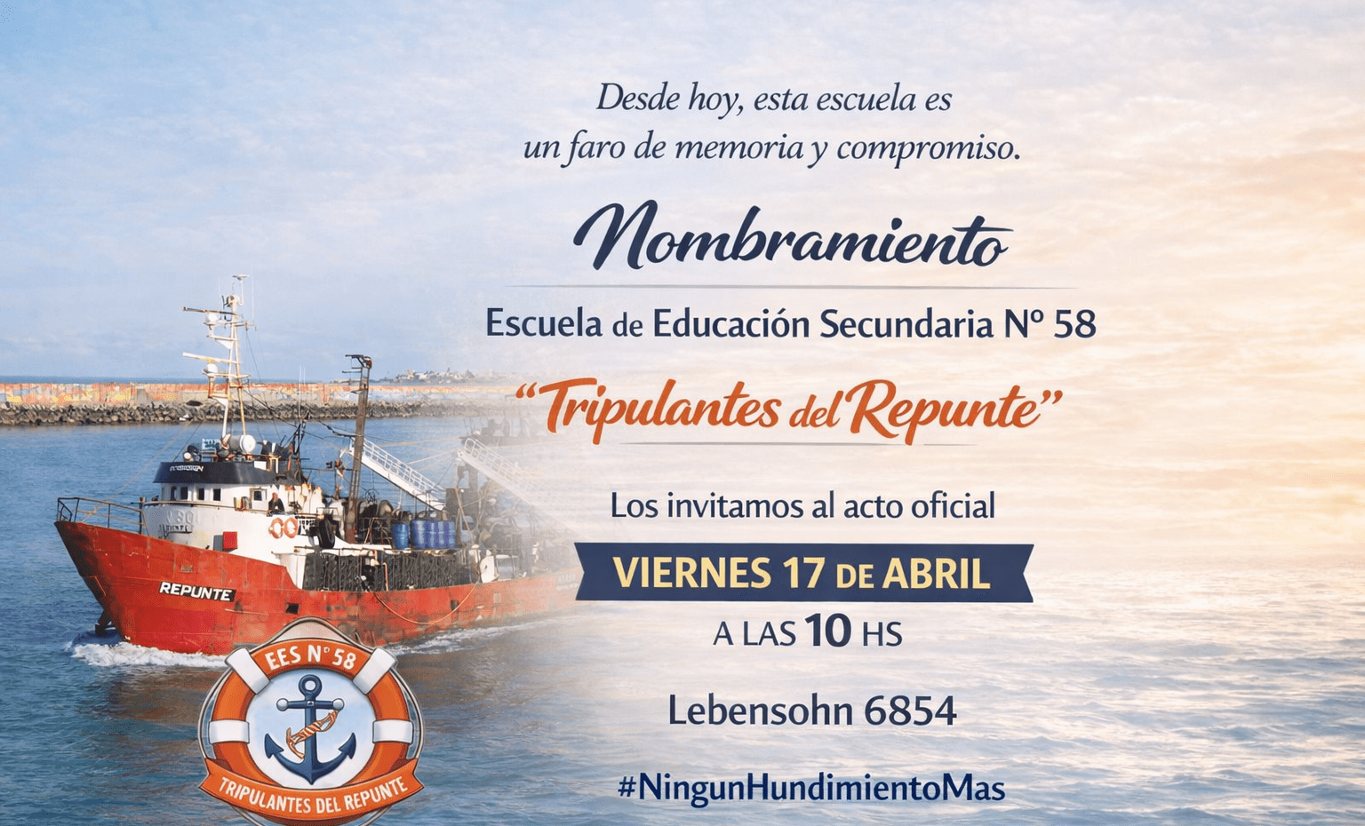 miércoles, 15 abril de 2026 miércoles, 15 abril de 2026Memoria que educa: una escuela llevará el nombre de los tripulantes del RepunteLa iniciativa, impulsada en el marco del colectivo Ningún Hundimiento Más, representa un hito en una lucha sostenida durante casi […]