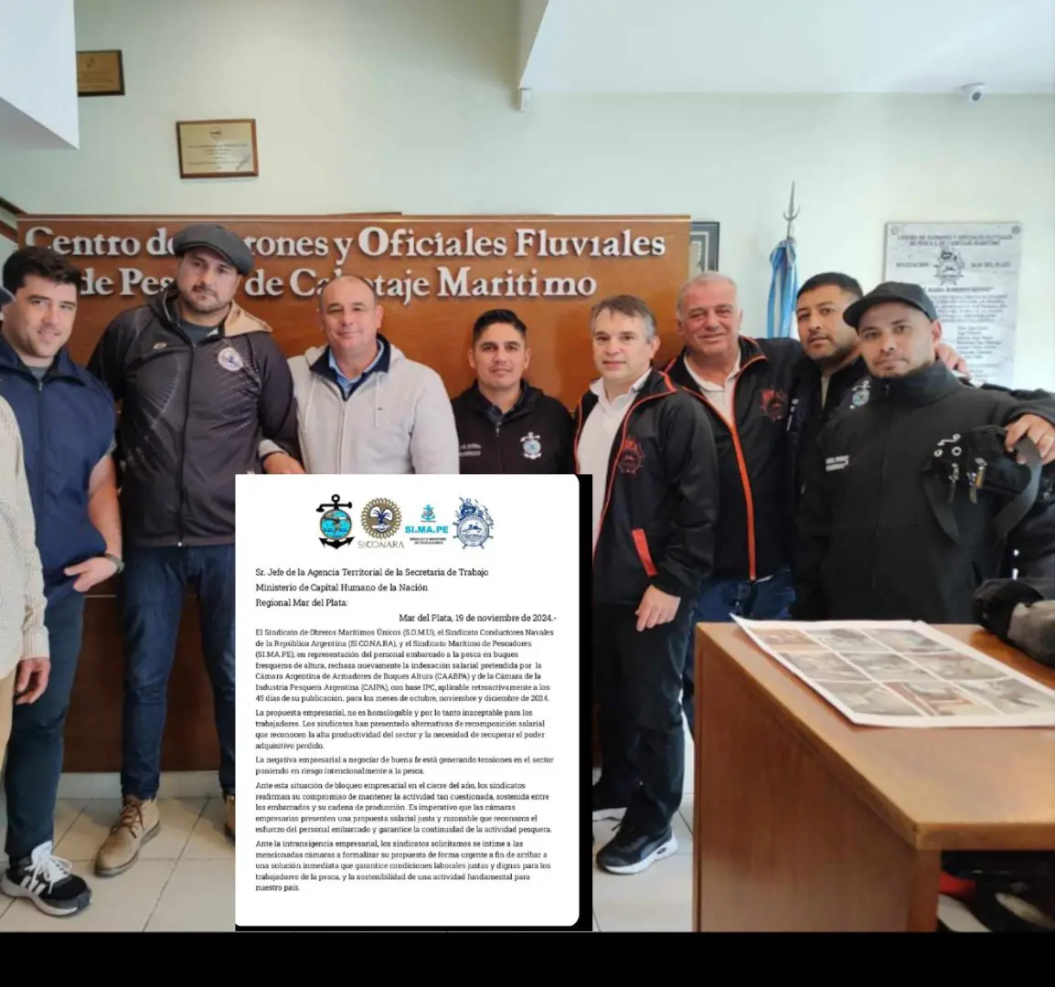 miércoles, 20 noviembre de 2024 miércoles, 20 noviembre de 2024Luego de otra reunión sin acuerdo paritario los gremios Marítimos Exponen su preocupación ante la falta de compromiso que reconozca el esfuerzo del personal embarcadoComunicado presentado por los gremios Marítimos : Sr. Jefe de la Agencia Territorial de la Secretaria de Trabajo Ministerio de […]