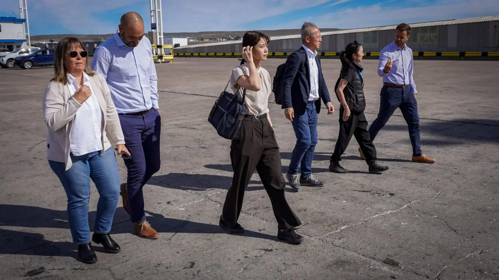 La comitiva recorrió el Muelle Almirante Storni en compañía del titular de la APPM, Diego Pérez, y destacaron el potencial exportador de la terminal.