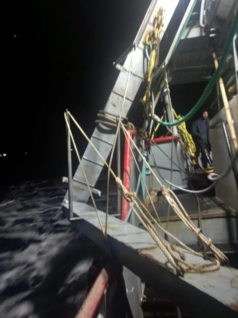 Más allá de la situación compleja que atraviesa en los últimos dias la pesquería de langostinos, a Dios gracias no hay que lamentar en estos incidentes ninguna consecuencia para las tripulaciones, que además de estar molestas por poco marisco, debe permanecer con derrotero a puerto y al menos perder un día y medio de trabajo hasta reparar los daños estructurales de tangones y parte de la borda que quedan como marcas del encuentro inesperado a 130 millas de la costa.